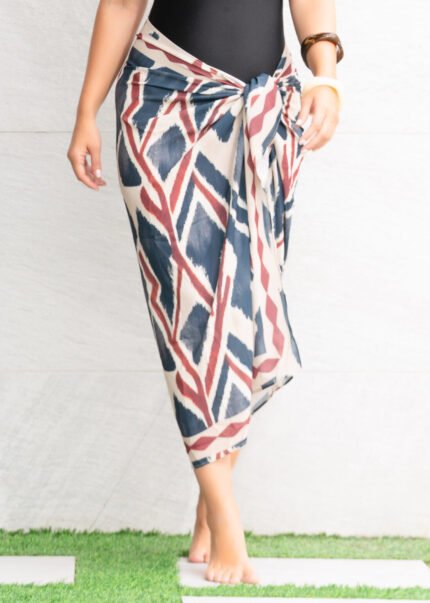 Falda tipo pareo de caída ligera con abertura lateral que estiliza la silueta y aporta movimiento.