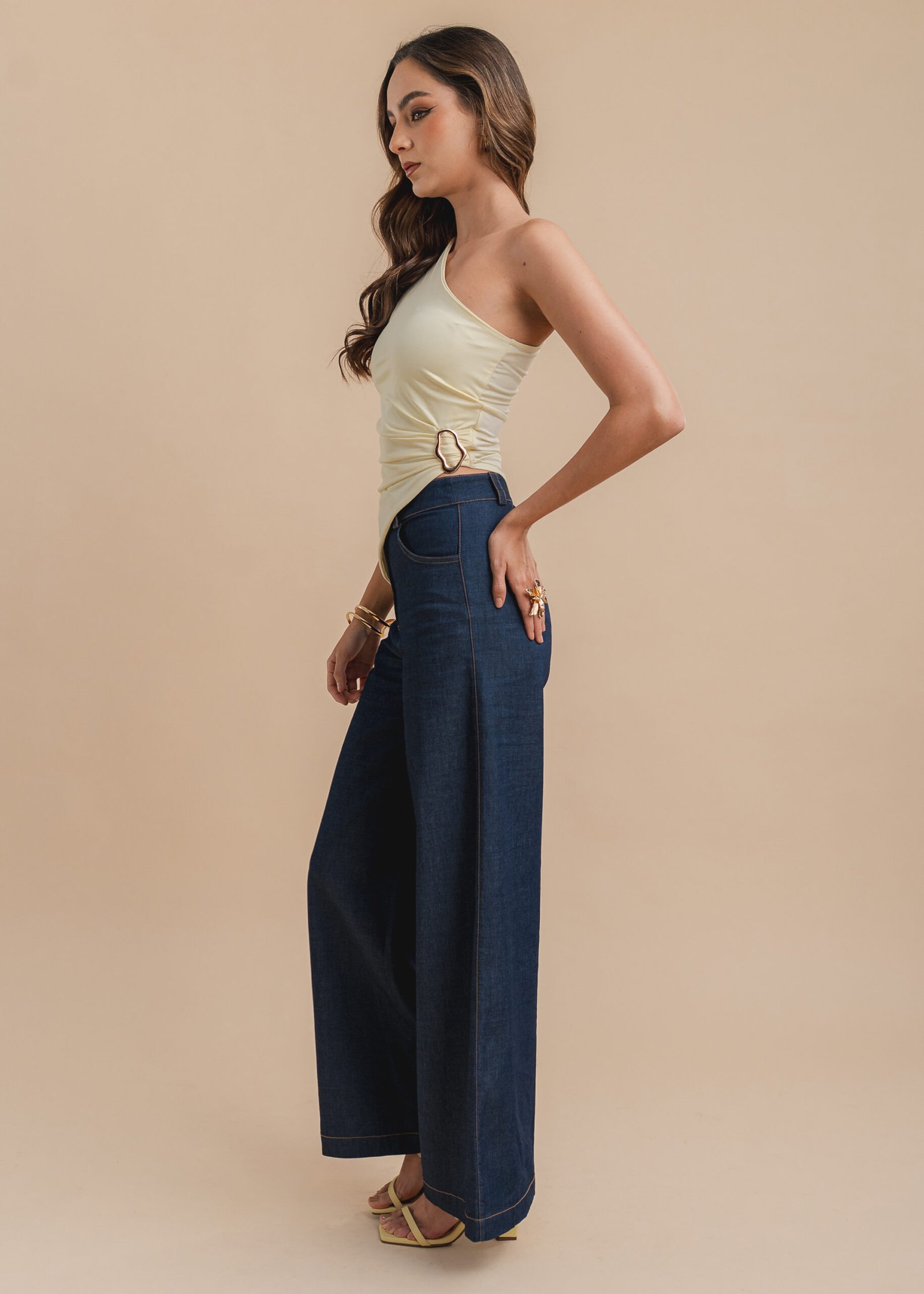Top stretch asimétrico de un hombro con hebilla decorativa